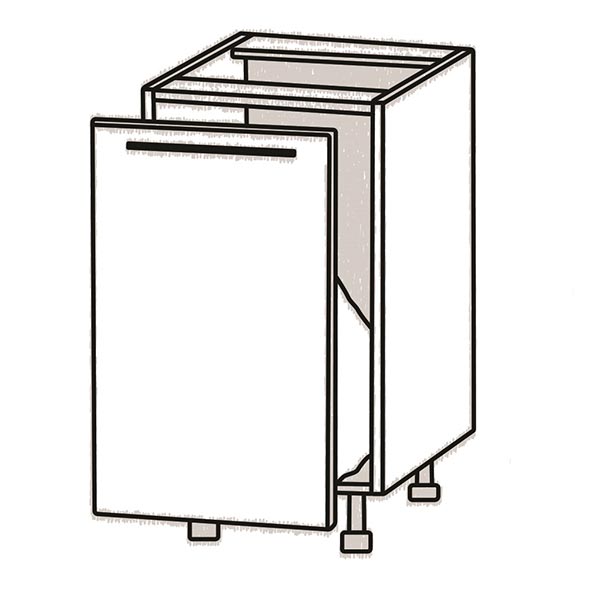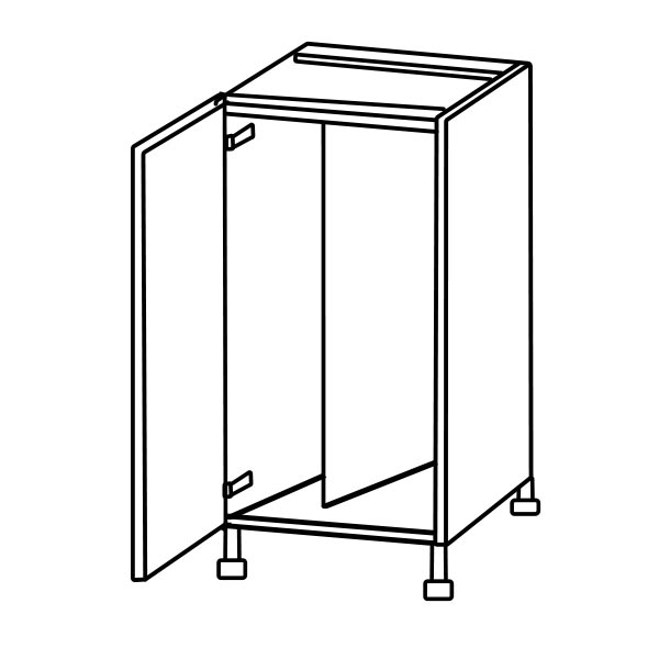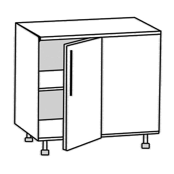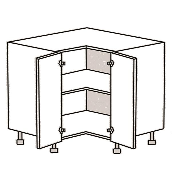 Includes – Plastic plinth legs, loose shelf, hinges, blind panel and white melamine front edged in a 1mm impact edging.