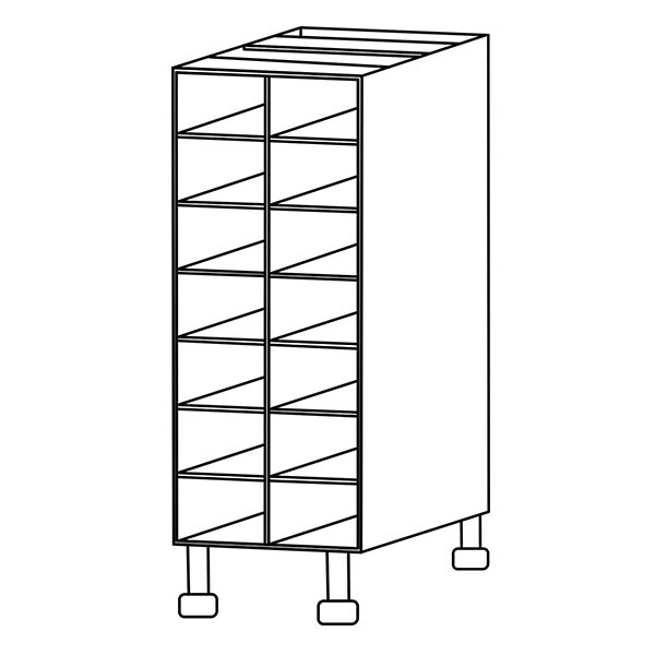 Includes – Plastic plinth legs, hinges and white melamine fronts edged in a 1mm impact edging.
